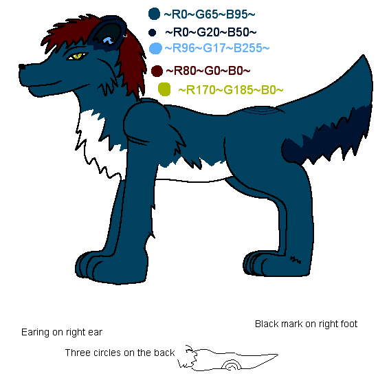 Earring on left ear, black mark on back left paw, three circles on back upper left hip. And you're good ^^